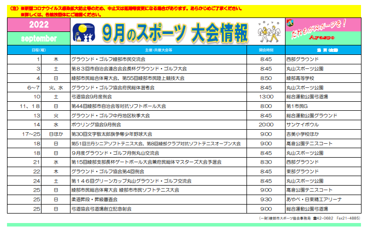 Published 2022年8月31日 at 736 × 463 in 9月のスポーツ大会情報