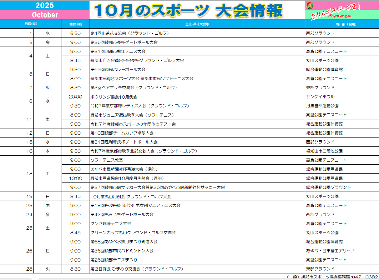 第37回 綾部市民総合スポーツ大会・第47回 綾部市自治会等(町区、事業所)対抗ソフトボール大会